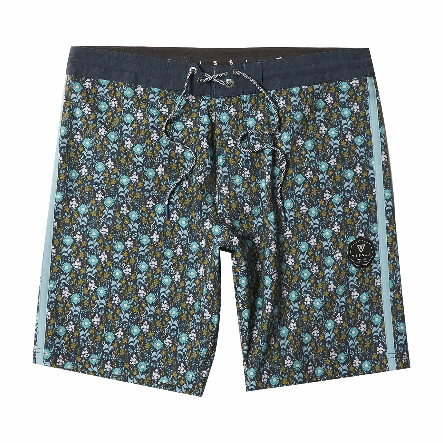 Vissla’s premium mid-length surf trunk at 18.5″. Features: an all around print with a vertical stripe on each side. Radiant, yet easy on the eyes, these 4-way stretch trunks will feel like a warm walk in the garden no matter where you are.36% Polyester From Coconut 34% Recycled Polyester 20% Cotton 10% Spandex / Mens Boardshorts Sun Garden in Dark Naval ( Dnl) / 36 / Cotton/ Polyester/ Spandex / Vissla