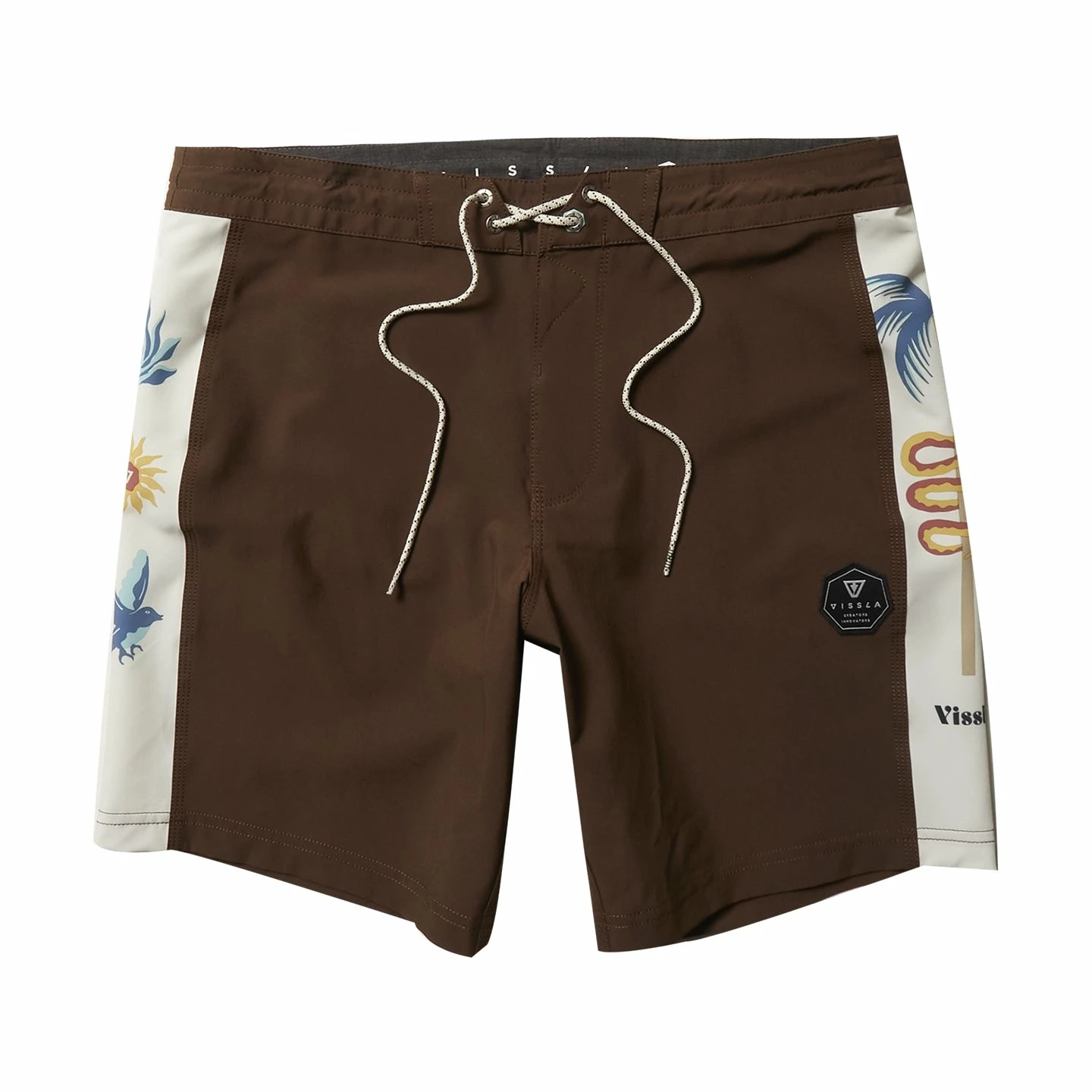 Freshly minted 4- Way stretch boardshort made with recycled poly Repreve and coconut fibers. Solid fabric with contrast printed side panels back pocket and integrated key rope. 17.5″ outseam. Don’t lose yourself.50% Recycled Polyester 38% Polyester From Coconut 12% Spandex / Mens Boardshorts Utopia 17.5″ in Java ( Jav) / 28 / Polyester/ Spandex / Vissla