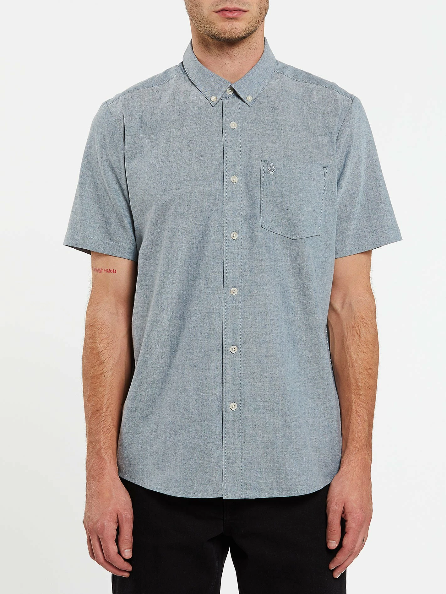 This button-up is on the come-up thanks to signature Volcom street style Everett Oxford short sleeve shirt wears slightly slim Premium fabrication includes stretch, resists shrinking and fading Asymmetrical back yoke offers signature Volcom style Woven Volcom logo label Iconic Stone logo embroidery Logo pearl buttons / Mens Woven Everett Oxford in Blue / Medium / Volcom
